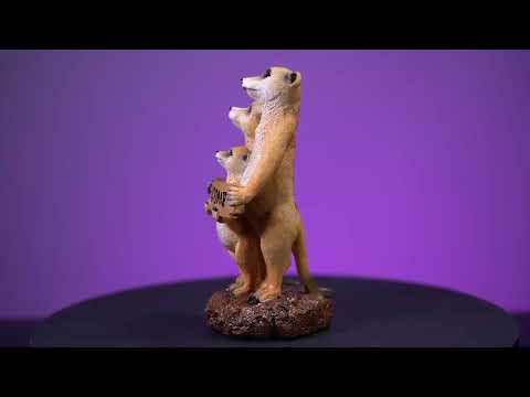 歓迎の兆候を持っているミーアキャットの愛らしい家族。毛皮の質感と現実的なディテールは、本物の動物のように見えます。豪華で重い感じのある頑丈なポリエッシンで作られています。 6インチの測定値。