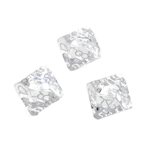 Translucent Polyhedral Clear/white Tens 10 ~ Multiple loose dice are pictured to show all sides and possible color variations. Item Code is for individual dice.
