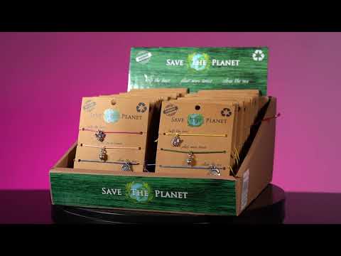 職人によって手作りの惑星の綿のブレスレットを保存する3 'セット。 3つの象徴的な魅力が特徴です。ハチ、ドングリ、魚。この環境に優しいブレスレットは、鮮やかな色の間にランダムに船です