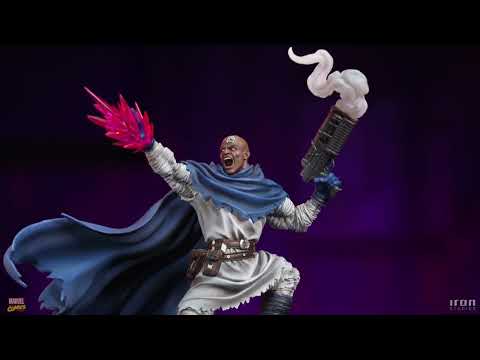 Während der Lauf nach einem Schuss immer noch dampft, schwingt der Zeitreisende-Mutant in seiner linken Hand die Originalwaffe, die er aus einer anderen Welt, der alternativen Zukunft, aus der er stammte, mitgebracht hat. Im Kampf projiziert er eine von seinem Körper absorbierte Energieexplosion in Form eines Plasmastrahlausbruchs aus seiner rechten Hand und zeigt die Wut auf seinem Gesicht. Er trägt ein weißes, rustikales Gewand, Stiefel, einen Umhang mit blauem Umhang und einen Ledergürtel mit Beuteln und kämpft auf einem Podest, das aus den Stufen einer Metallplattform besteht. So bringen Iron Studios die Statue „Bishop BDS – X-Men: Age of Apocalypse – Art Scale 1/10“ mit der Version der X-Men aus der Zukunft, inspiriert von Marvels kühner Comic-Saga aus den 1990er Jahren.