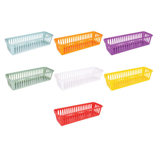 Keep your classroom or home workspace tidy with the Elizabeth Richards Classroom Pencil Baskets. Designed to neatly store pencils, markers, crayons, and other small supplies, these lightweight baskets help maintain an organised and accessible learning space. Their compact size ensures that materials stay within easy reach, while the stackable design maximises storage when not in use. Available in 15 vibrant colours, they support colour-coded organisation, making it simple to create a visually engaging and efficient environment.