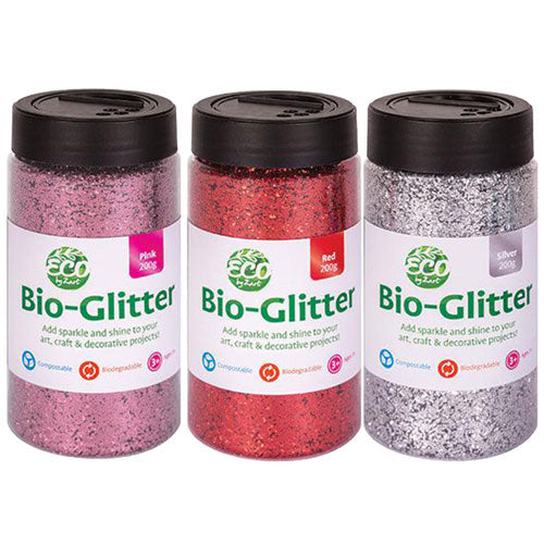 This eco friendly biodegradable glitter is great for a variety of home and classroom art and craft activities. Made from plant cellulose Bio Glitter is 75% degradable after 45 days in standard composting conditions.