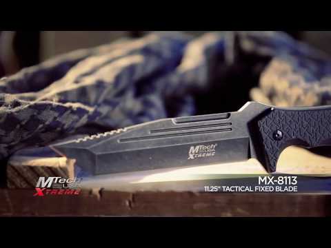 El Hatchet M-Tech USA con vaina de nylon (negro) tiene una longitud total de 280 mm. Invierte la vaina de nylon, la cuchilla de acero inoxidable, la cuchilla de satén y el mango de agarre de goma
