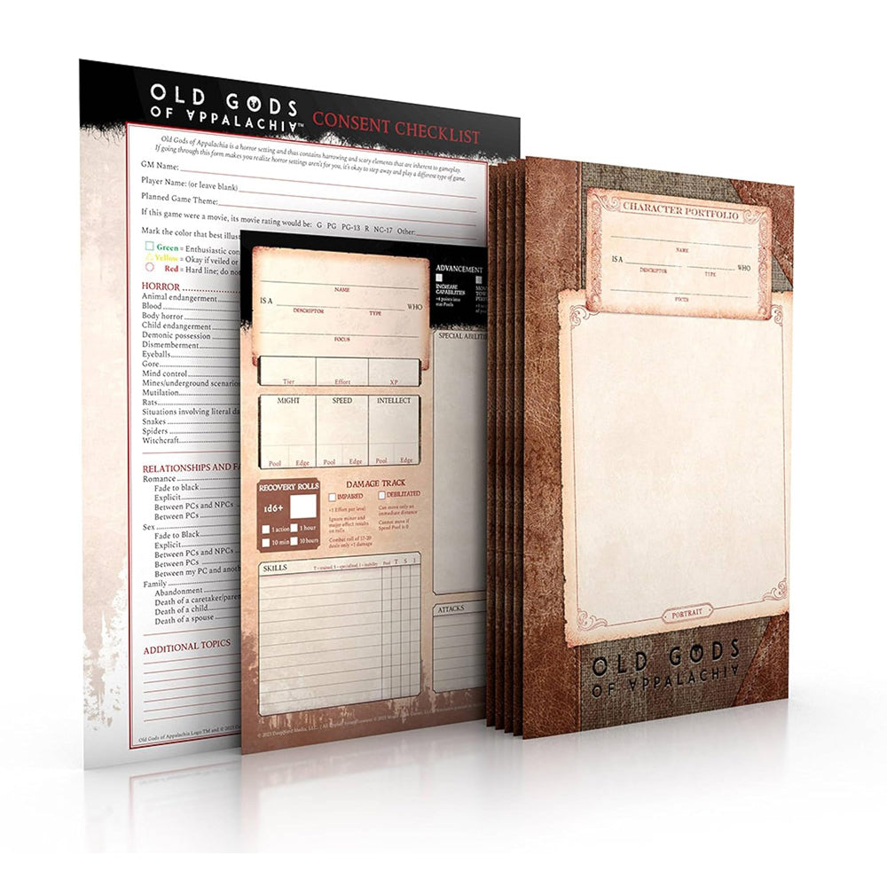 A setting rich in lore and detail evokes characters equally deep and vibrant. These 24-page character portfolios do the job of a character sheet, but also give you room for notes, sketches, and details. Keep a campaign journal, make maps and location notes, keep track of NPCs, or flesh out your character's backstory and relationships. This reward comes in a pack of fiveone for everyone at the game table.