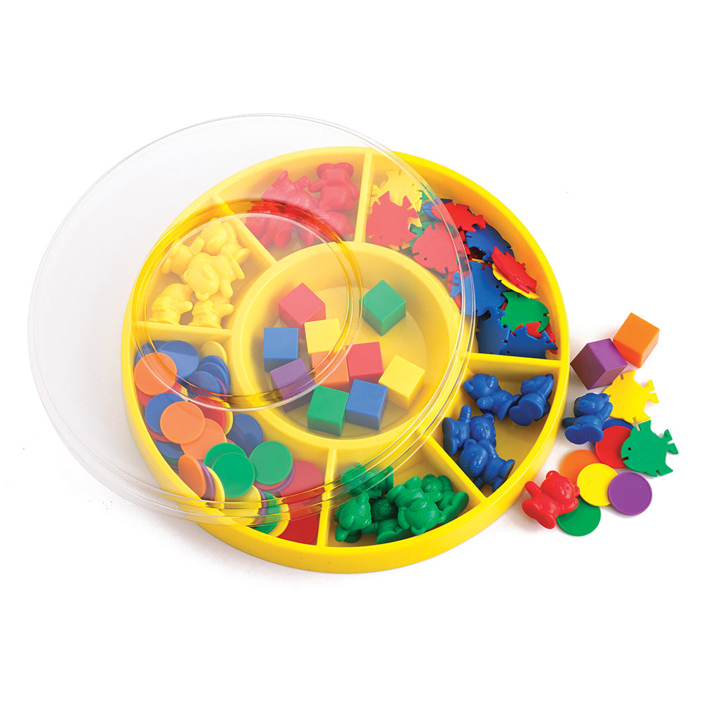 - Set Includes: 132 x Pieces (Basic Shapes, Bears, and Fish), 1 x Circular Sorting Tray with Lid