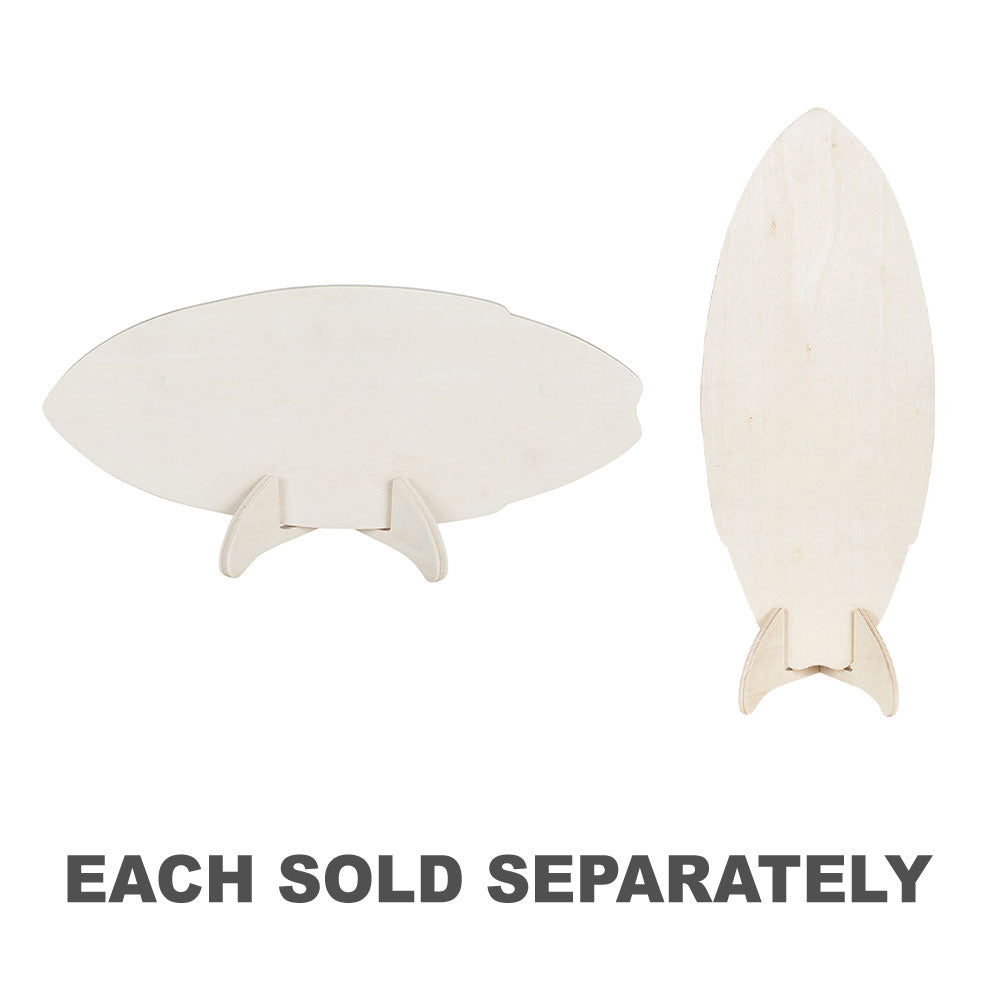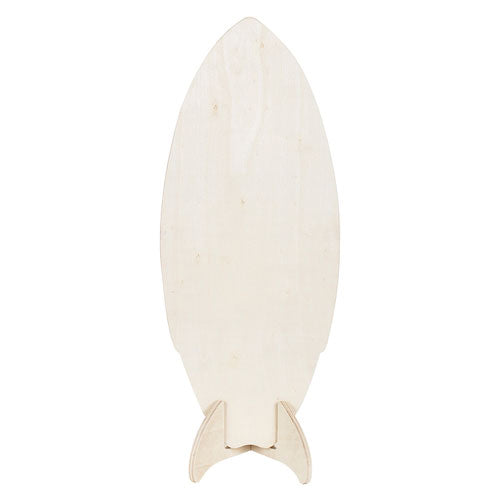 This Surfboard with Stand is made from 10mm thick FSC plywood. Its surfaces are smooth and flat. The wood has been left natural and unsealed for easy decorating. Edged are rounded for a neater finish and to compliment this classic design. The wooden stand is a two-piece design, with the separate brackets easily slotting into each other.